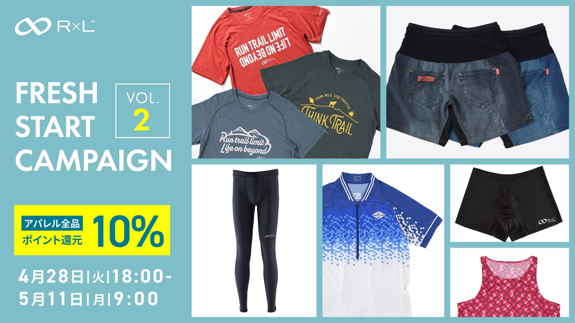 フレッシュスタートキャンペーン第二弾開催中!OUTLET品含むアパレル全品ポイント還元10%!5月11日(月) AM9時まで。